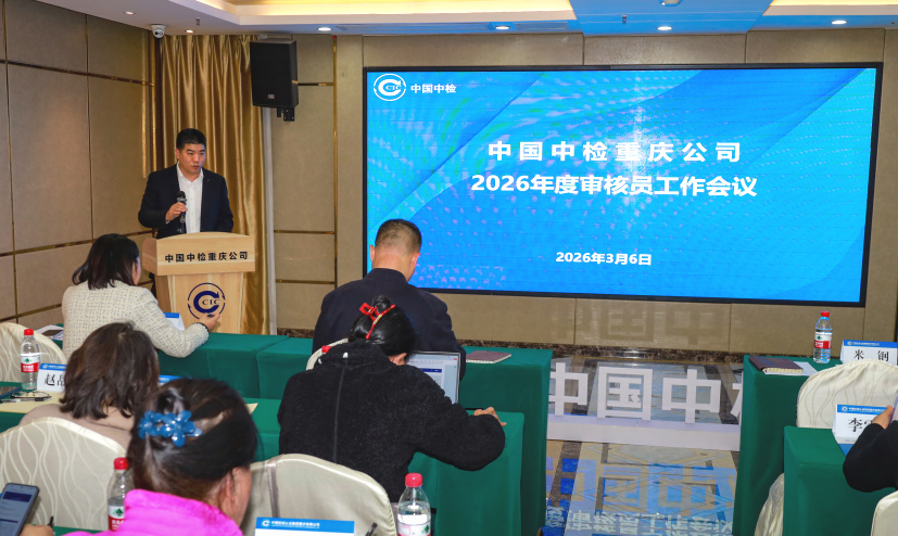 近日,中国中检重庆公司召开2026年度审核员工作会议。会议以“专业·凝聚·共赢”为主题,总结2025年审核工作,部署2026年重点任务,表彰先进典型,凝聚发展共识。重庆公司总经理潘沪林、副总经理伏俊芝出席会议。