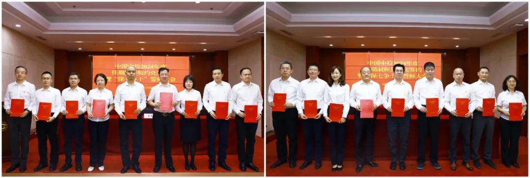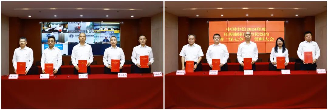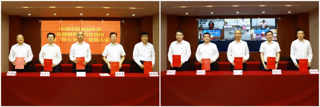 5月24日,中国中检在京召开2024年度任期制和契约化签约暨“保七争十”誓师大会,组织集团公司领导班子,直管单位、试点产品线、各部室主要负责人签订2024年度契约协议。中国中检党委书记、董事长许增德出席会议并讲话,党委副书记高和生主持会议,集团领导班子成员余师孟、孔祥月、孙玉友、李维政出席会议。