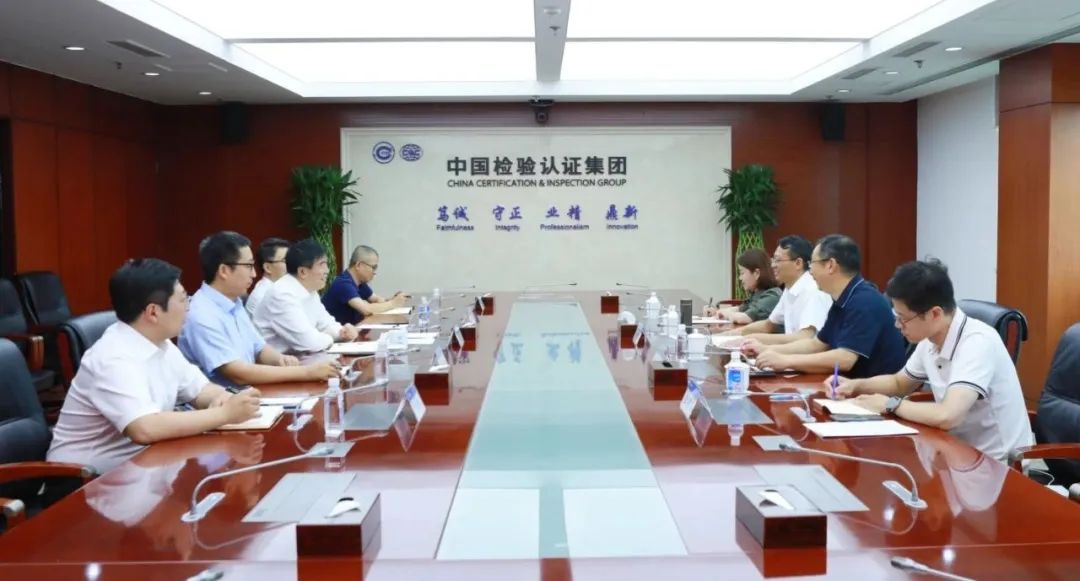 8月14日,中国中检党委委员、副总经理孙玉友会见来访的南通市市场监督管理局党组书记、局长徐加明一行,双方就合作事宜开展座谈交流。