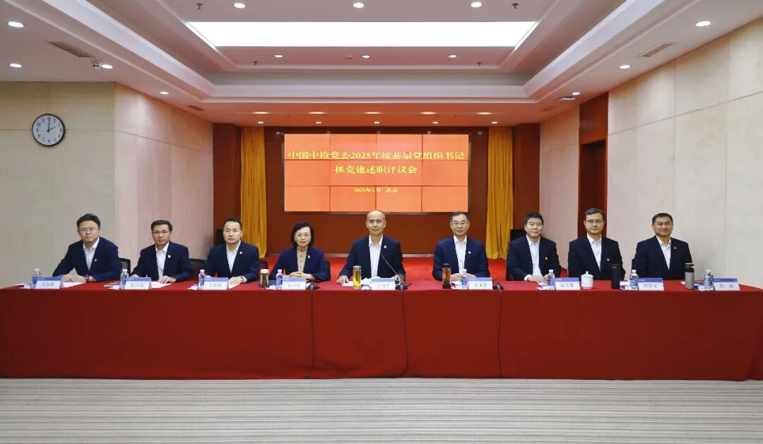 为深入学习贯彻习近平新时代中国特色社会主义思想,全面贯彻落实党的二十大和二十届历次全会精神,认真落实习近平总书记对中央企业工作作出的重要指示精神,持续巩固深化习近平总书记全国国企党建会重要讲话精神落实成效,进一步压实管党治党政治责任,不断提升党建工作质量,1月14日,中国中检召开2025年度基层党组织书记抓党建述职评议会。集团党委书记、董事长许增德主持会议并讲话,党委副书记、总经理李永吉,党委副书记张玉辉,领导班子成员孙玉友、万鑫铭、何学义、孙汉福、吕祁、王志刚参加会议。